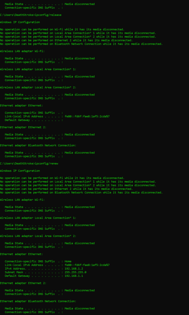 Notes, Observations, and Questions: Retransmission via ipconfig/(release\renew)
